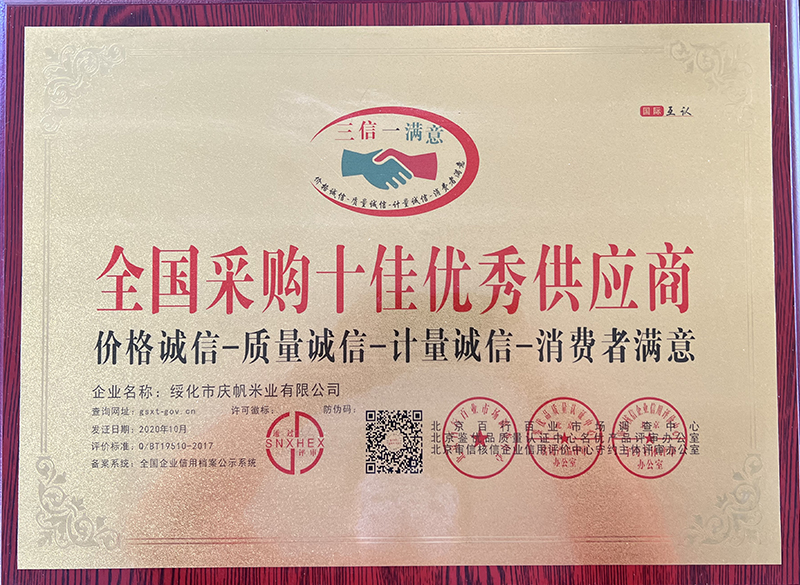 關(guān)于慶帆米業(yè) 客戶至上 品質(zhì)優(yōu)良 您現(xiàn)在的位置:網(wǎng)站首頁 > 關(guān)于我們 > 資質(zhì)榮譽 企業(yè)文化 CORPORATE CULTURE 資質(zhì)榮譽 HONOR 領(lǐng)導致辭 LEADER’S SPEECH 公司簡介 COMPANY PROFILE 優(yōu)秀民營企業(yè)家 中國品牌“放心米” 全國優(yōu)秀民營企業(yè) 全國農(nóng)產(chǎn)品加工標桿示范單位 全國采購十佳優(yōu)秀供應商 最美捐贈單位 共15條記錄 當前為第1頁/共3頁上一頁123下一頁